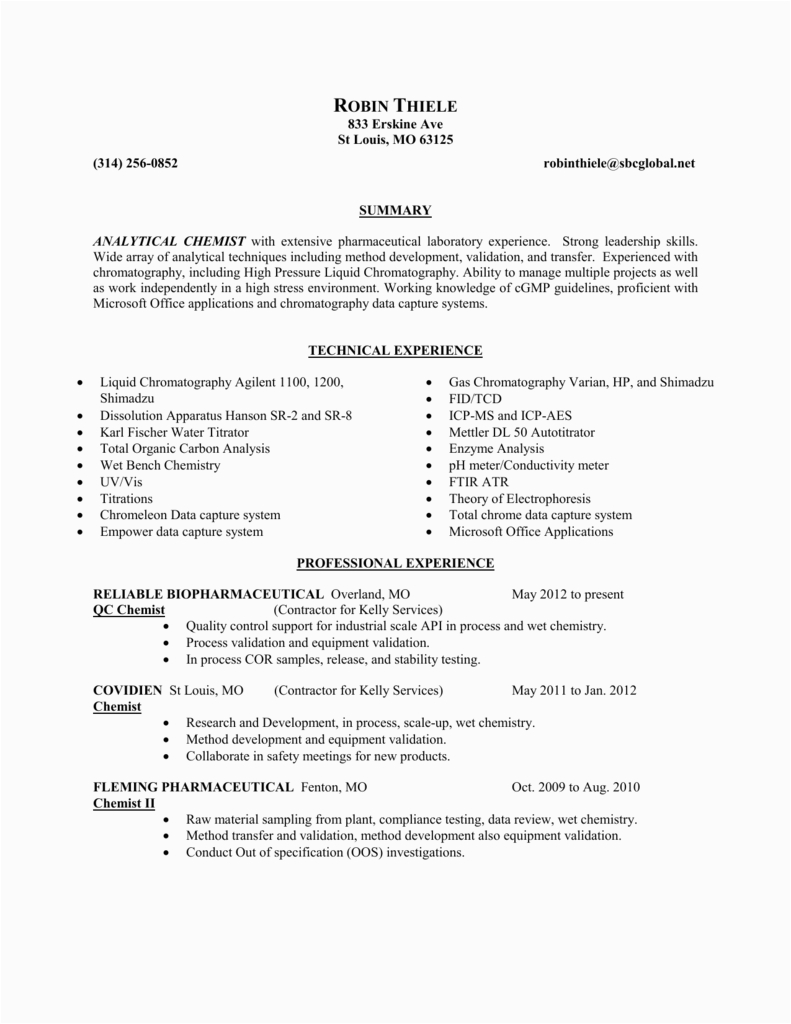 Back To Pharmaceutical Resume Samples for Quality Control