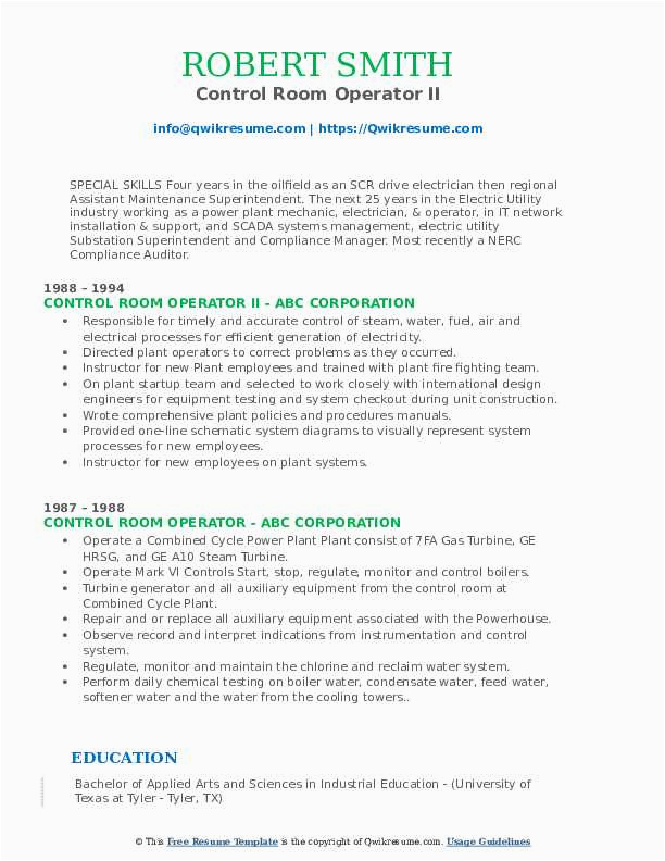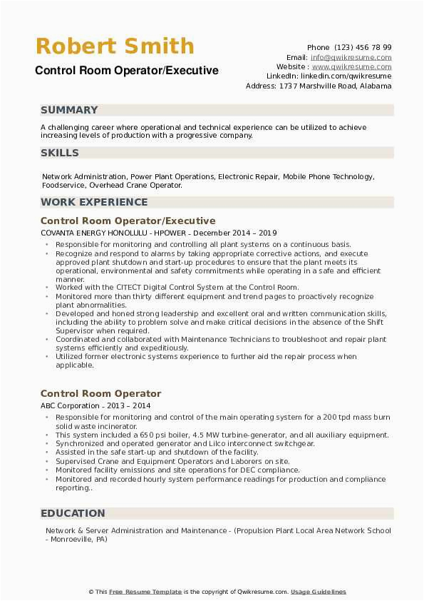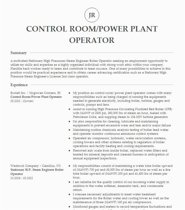 Power Plant Control Room Operator Resume Sample Power Plant Operator Resume Samples and all other pictures, designs or photos on our website are copyright of their respective owners. we get our pictures from another websites, search engines and other sources to use as an inspiration for you. please contact us if you think we are infringing copyright of your pictures using contact page. we will be very happy to help you.