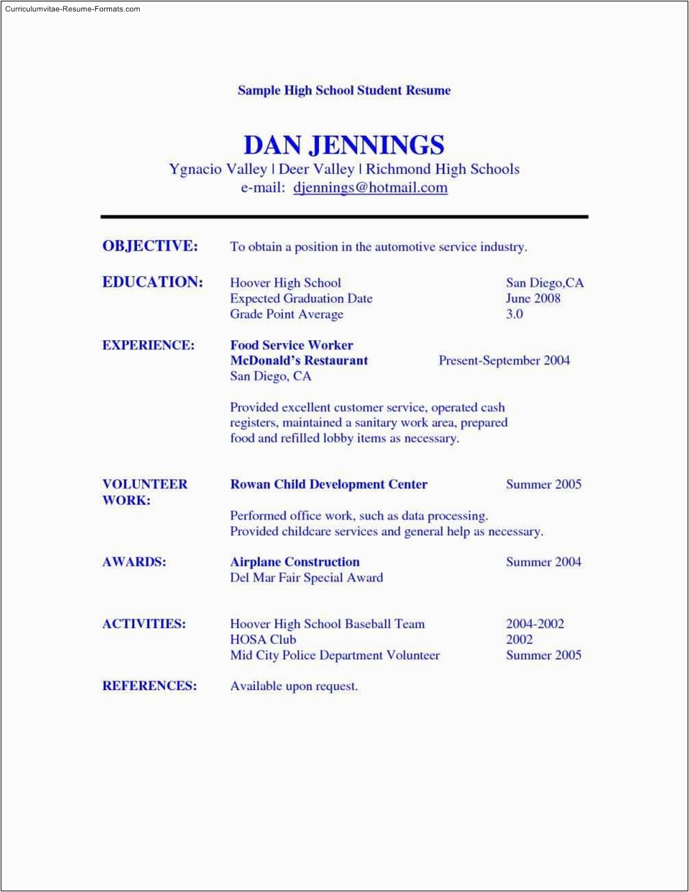 There are hence many options for you as you search for the perfect printable sample resume for high school student, and bearing in mind some hard enactment and perseverance upon your part, you will locate yourself as soon as a first-class resume in no time, and hopefully, a first-class employer, as well!. For more recommendation on resumes or for a printable sample resume for high school student checkout this recommended websites.