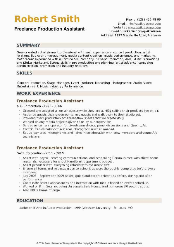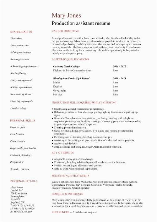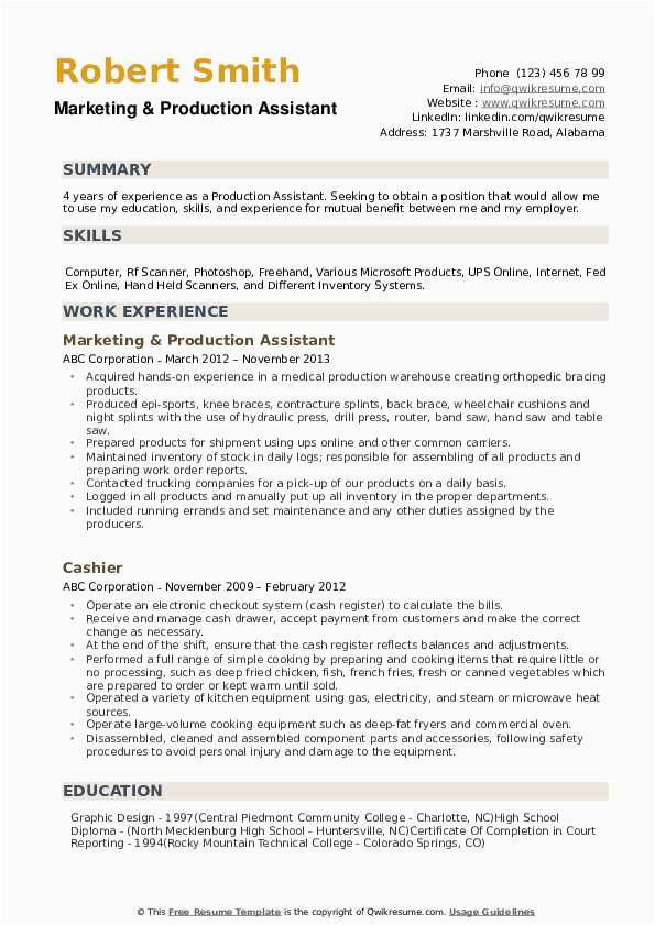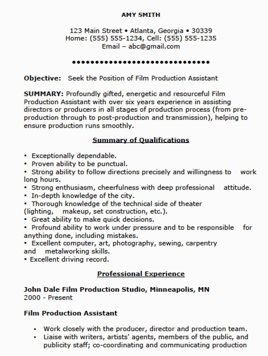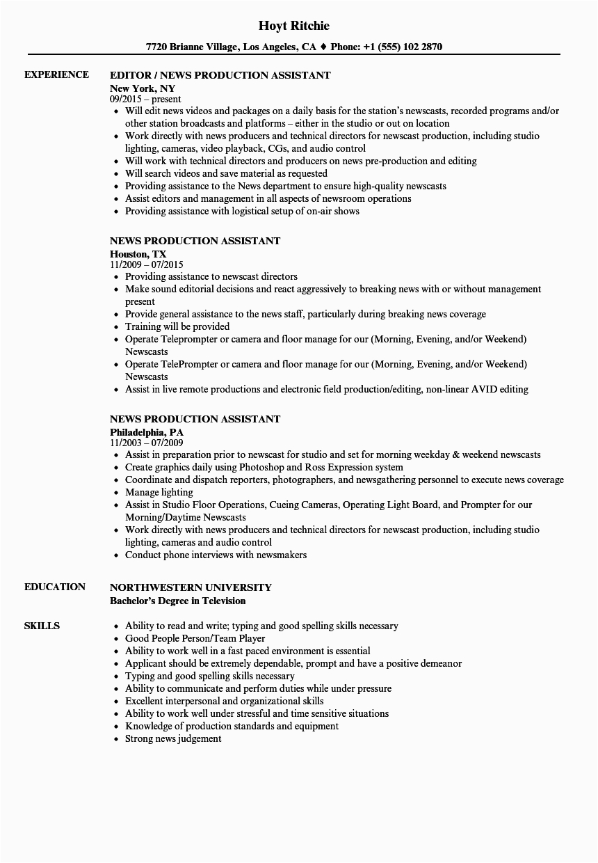 9 photos of the Production assistant Resume No Experience Sample