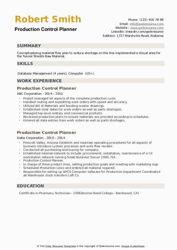 Production Planning and Control Manager Resume Samples Production Control Planner Resume Samples and all other pictures, designs or photos on our website are copyright of their respective owners. we get our pictures from another websites, search engines and other sources to use as an inspiration for you. please contact us if you think we are infringing copyright of your pictures using contact page. we will be very happy to help you.