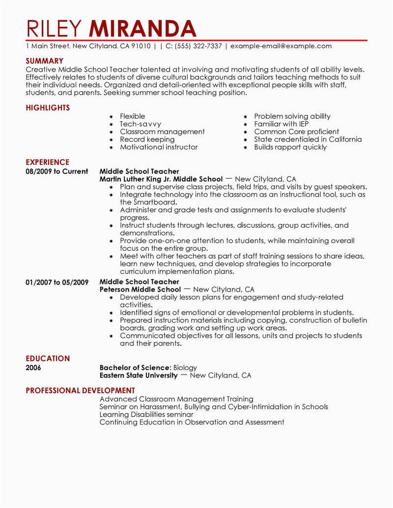 Best Summer Teacher Resume Example From Professional