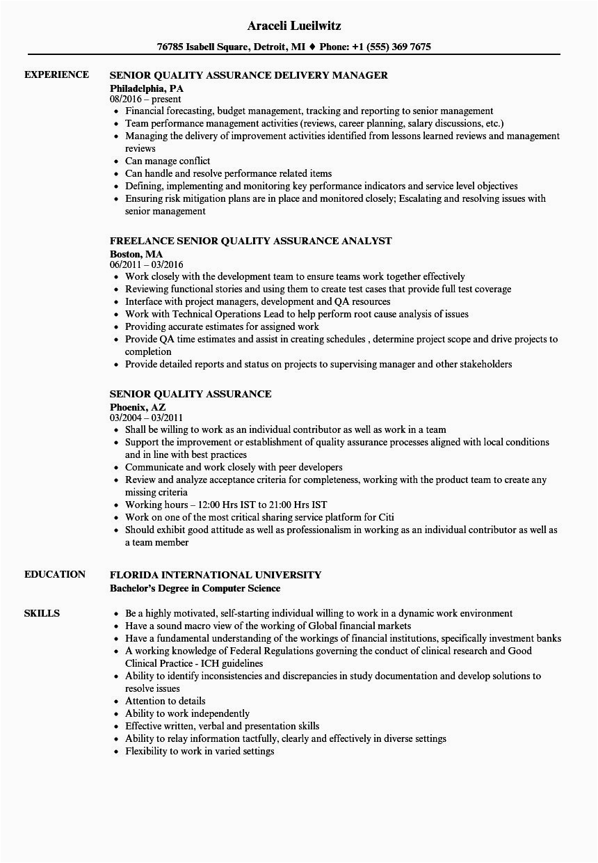 Quality assurance Resume Example Beautiful Senior Quality