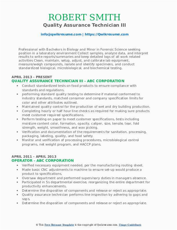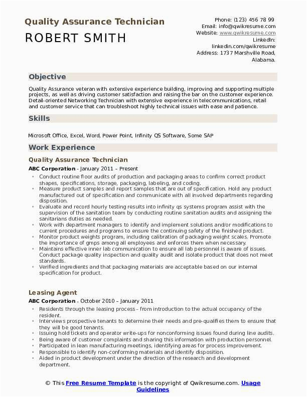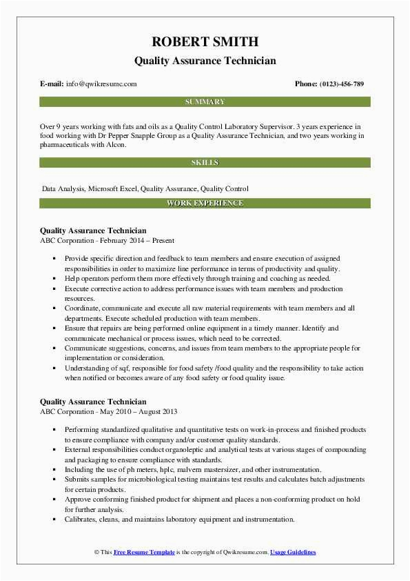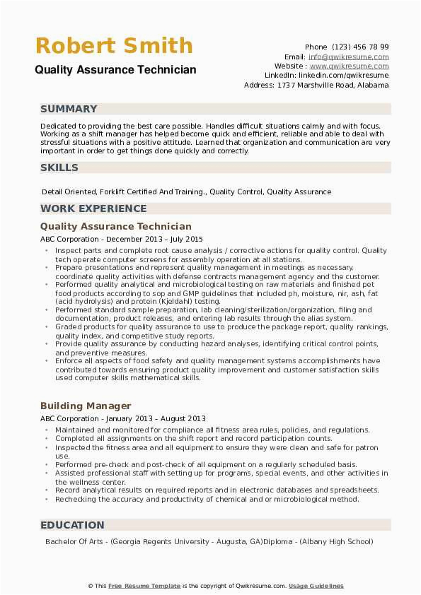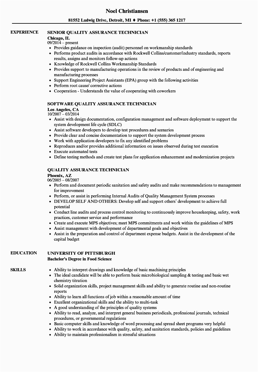 9 photos of the Quality assurance Technician Resume Sample No Experience