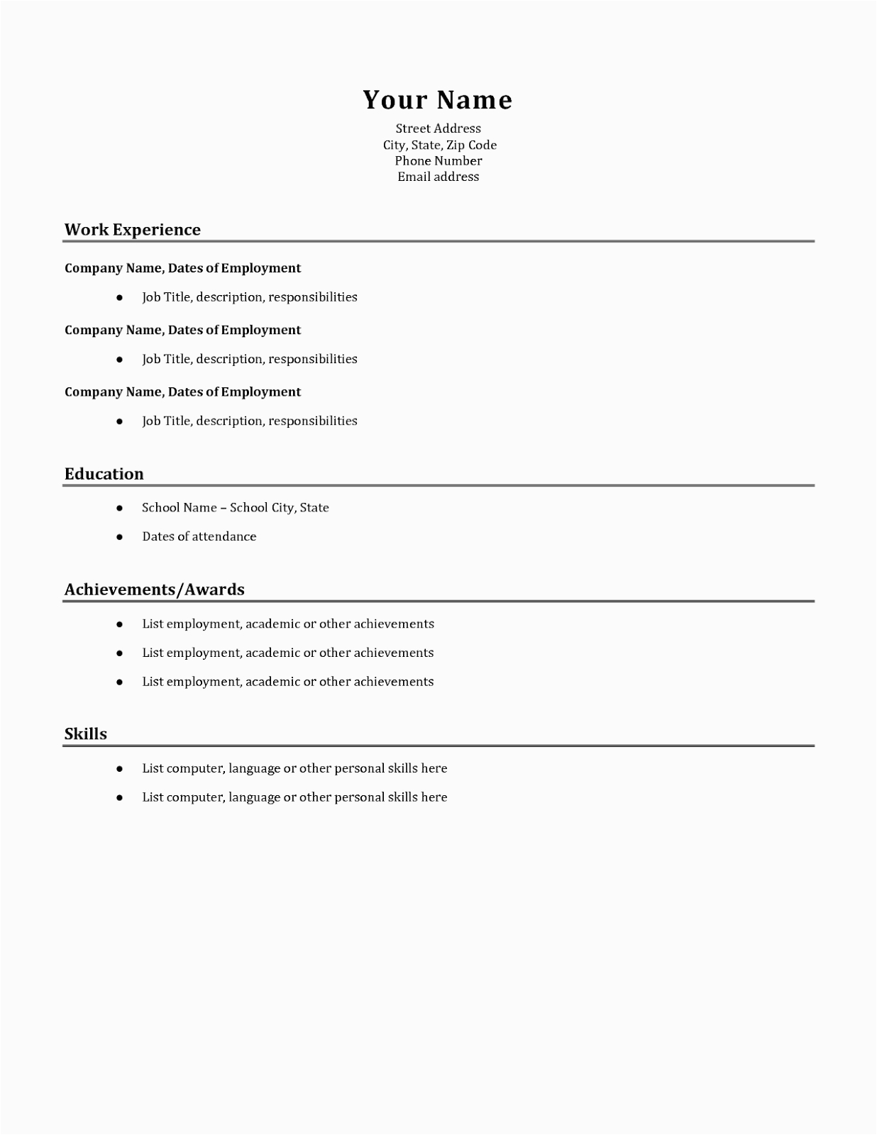 Back To Quick and Easy Resume Template Free