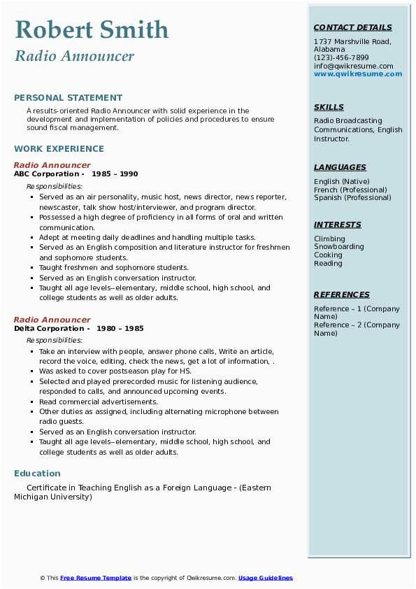 Radio Talk Show Producer Scope Of Responsibilities Resume Sample Radio Announcer Resume Samples and all other pictures, designs or photos on our website are copyright of their respective owners. we get our pictures from another websites, search engines and other sources to use as an inspiration for you. please contact us if you think we are infringing copyright of your pictures using contact page. we will be very happy to help you.