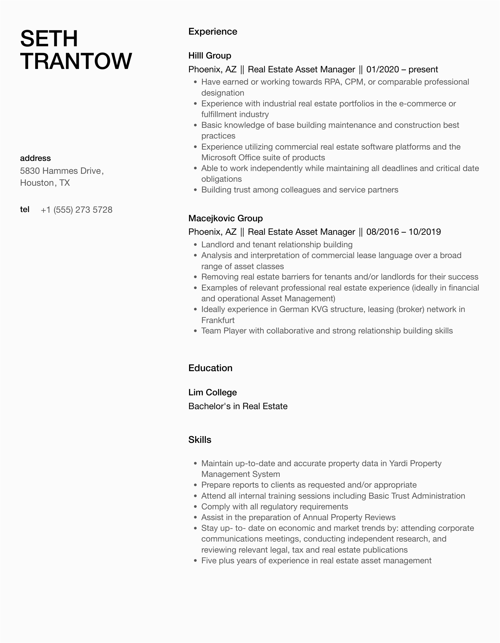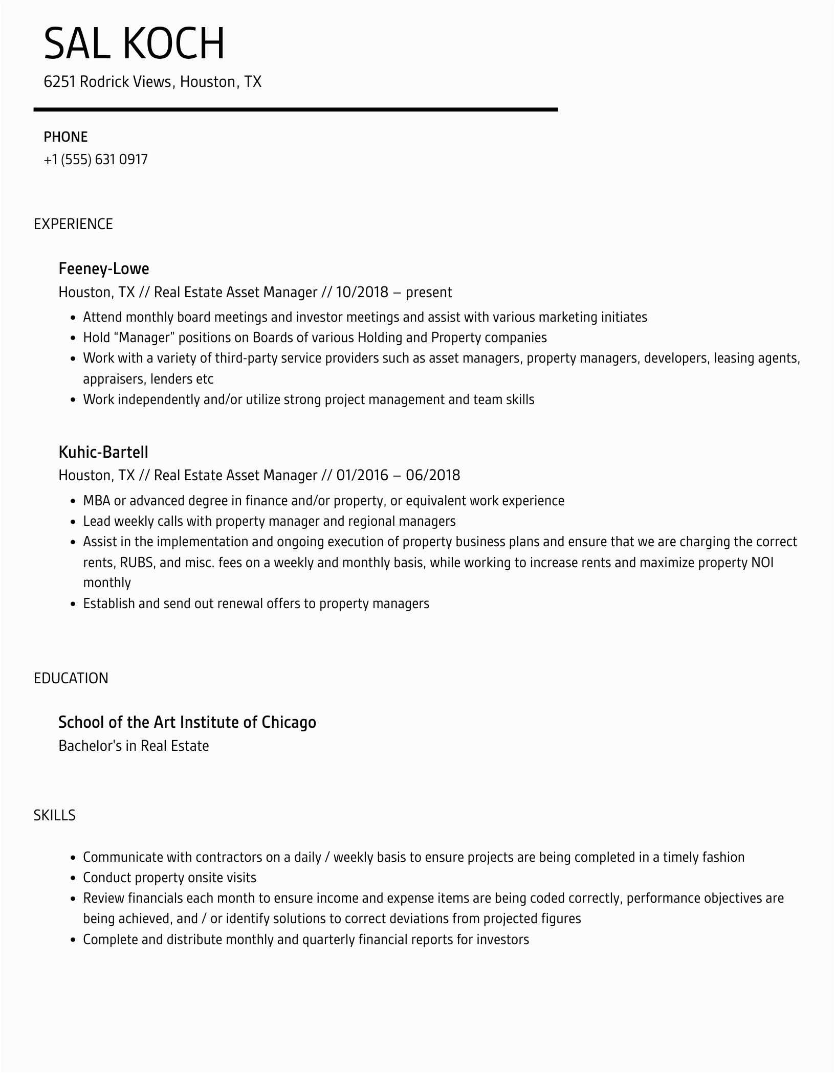 9 photos of the Real Estate asset Manager Resume Samples