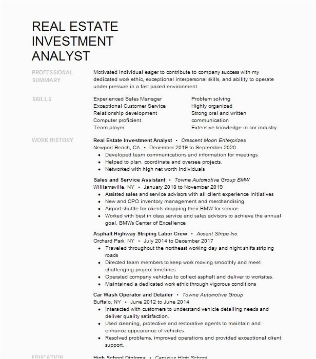 9 photos of the Real Estate Investment Analyst Resume Samples