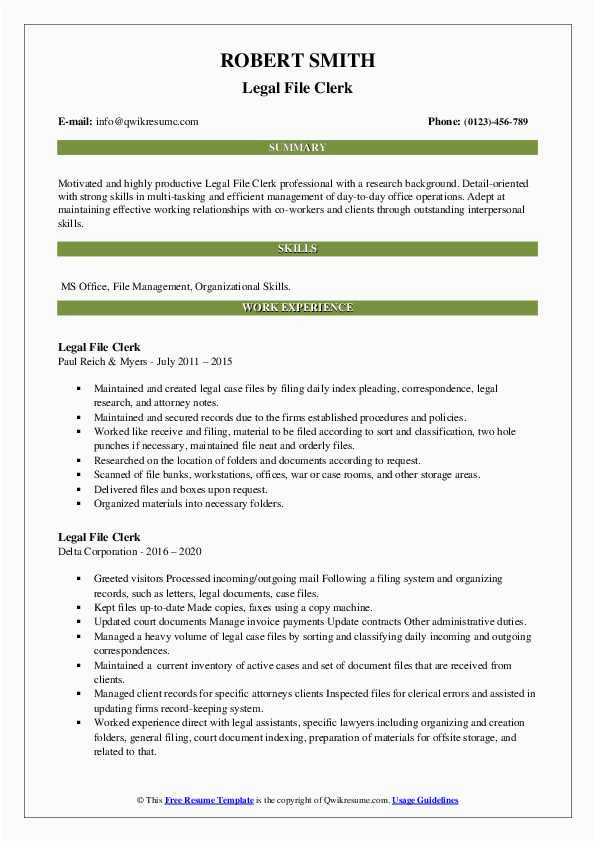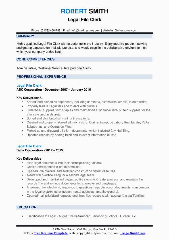 Legal File Clerk Resume Samples