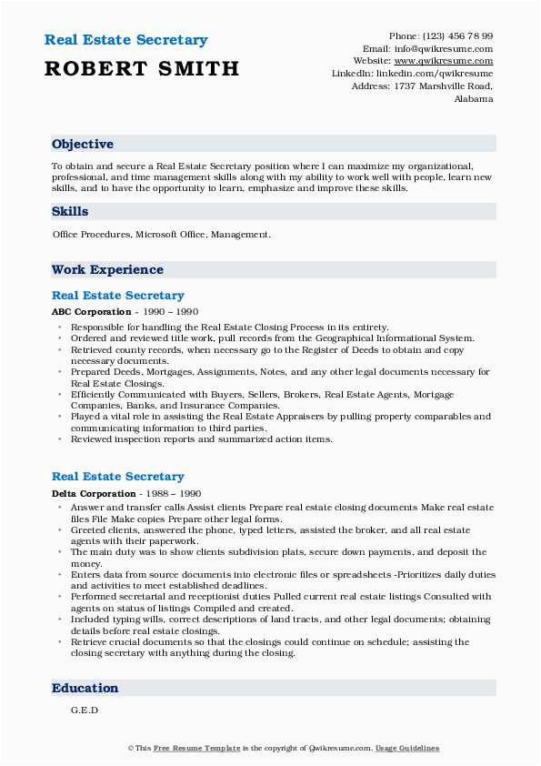 9 photos of the Real Estate Legal Secretary Resume Sample