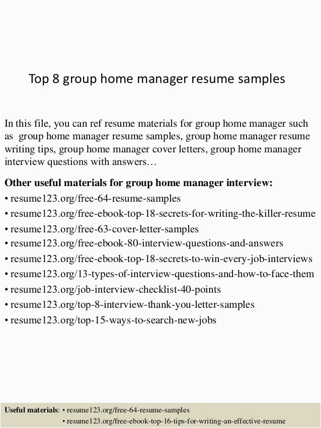 There are correspondingly many options for you as you search for the absolute residential group home manager sample resume, and in the same way as some difficult act out and perseverance on your part, you will locate yourself as soon as a first-class resume in no time, and hopefully, a first-class employer, as well!. For more suggestion on resumes or for a residential group home manager sample resume checkout this recommended websites.
