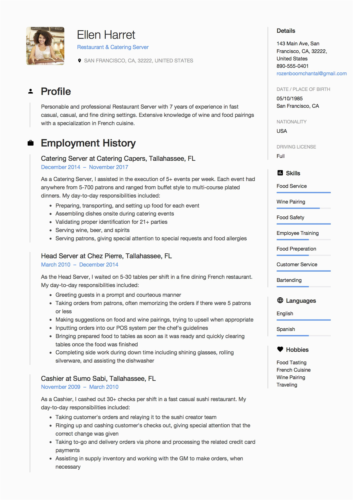 There are for that reason many options for you as you search for the perfect restaurant server job description resume sample, and bearing in mind some difficult accomplishment and perseverance on your part, you will locate yourself following a first-class resume in no time, and hopefully, a first-class employer, as well!. For more guidance upon resumes or for a restaurant server job description resume sample checkout this recommended websites.