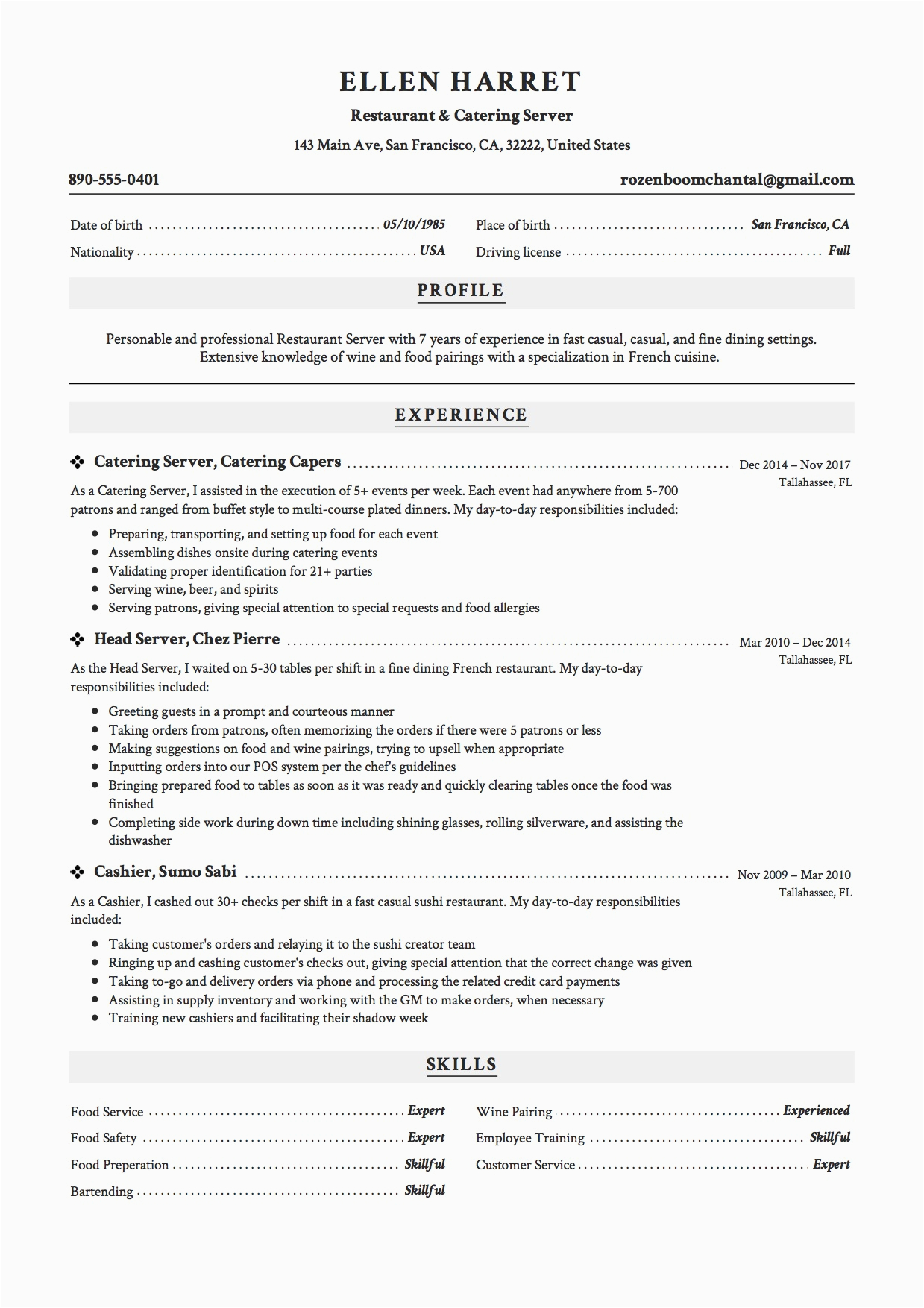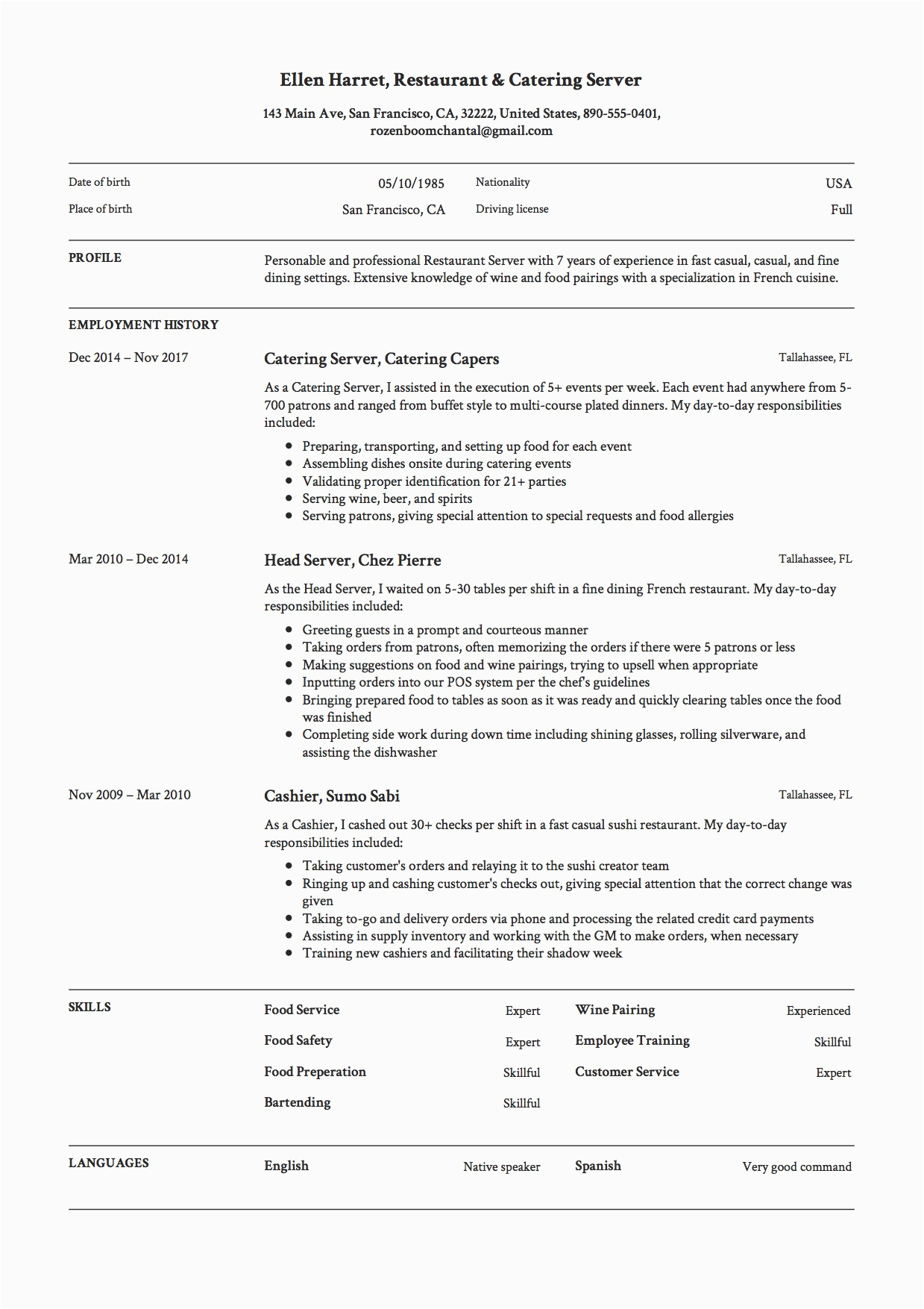 Full Guide Restaurant Server Resume 12 PDF Examples