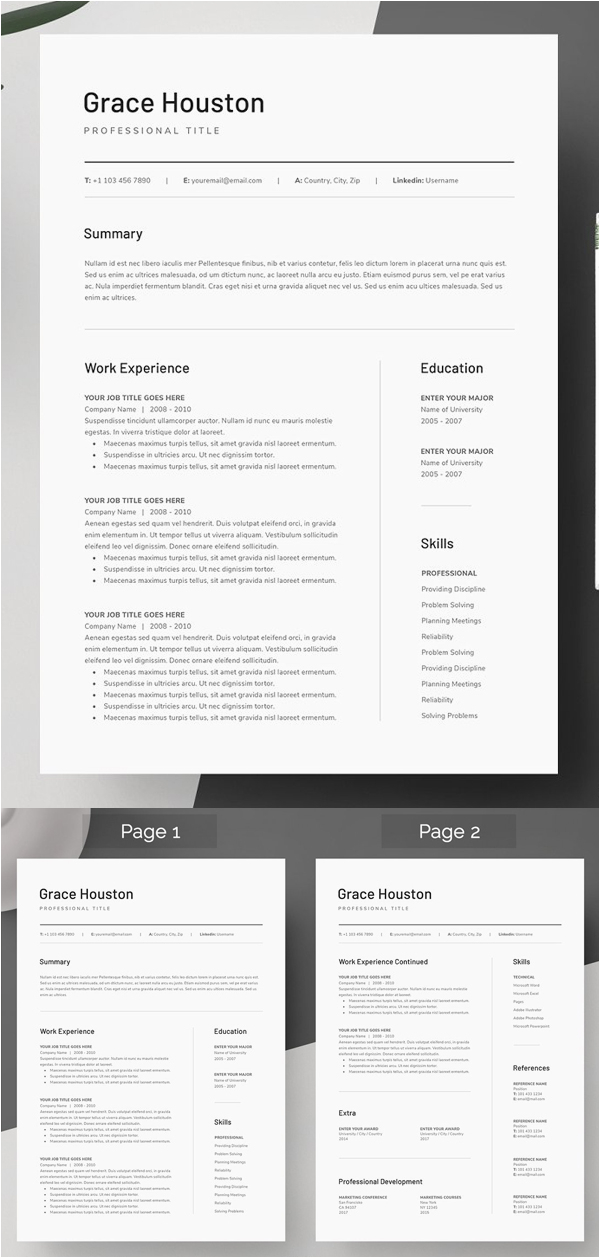 Free 2 Page Resume Template with Matching Cover Letter Design