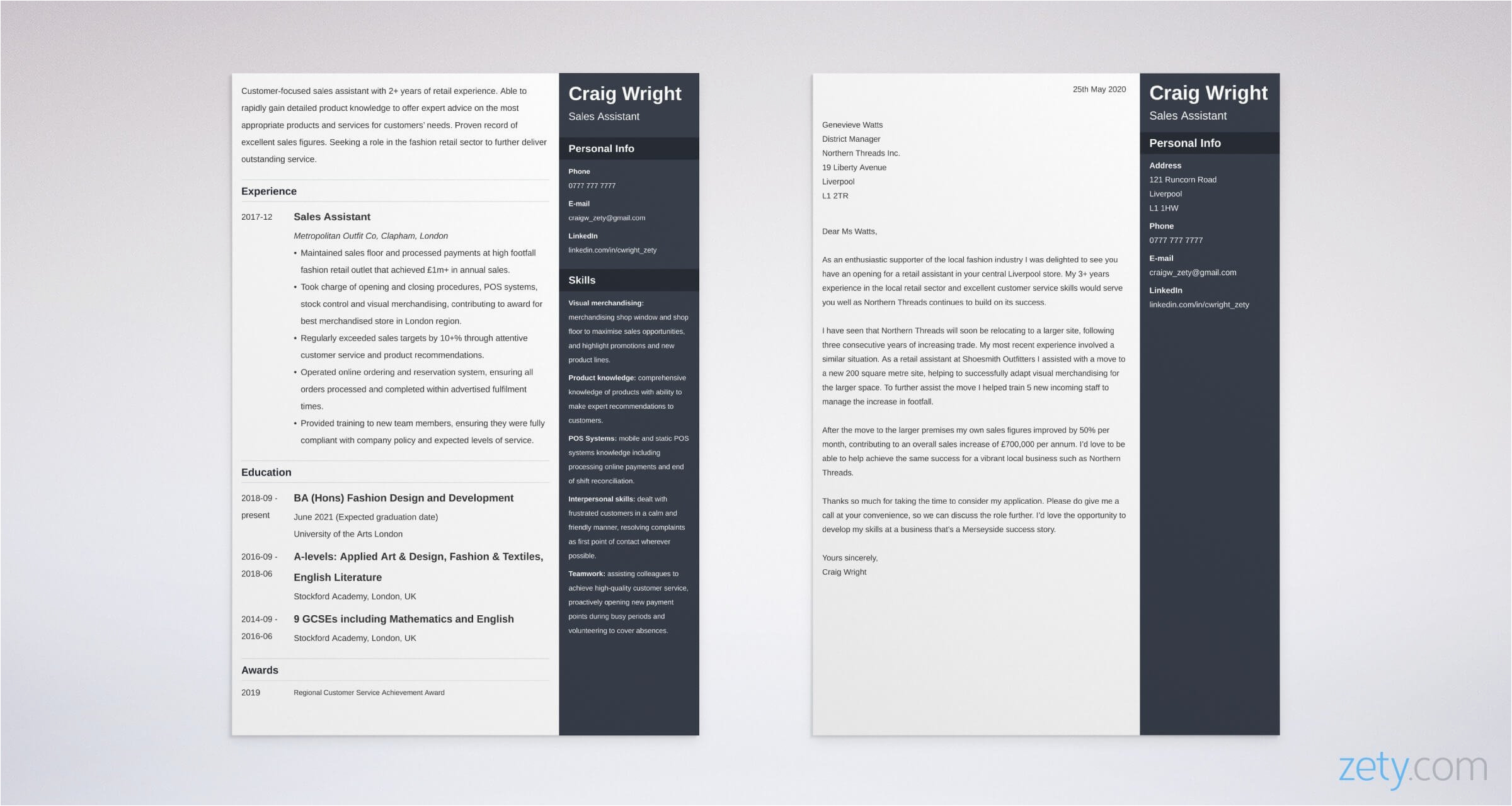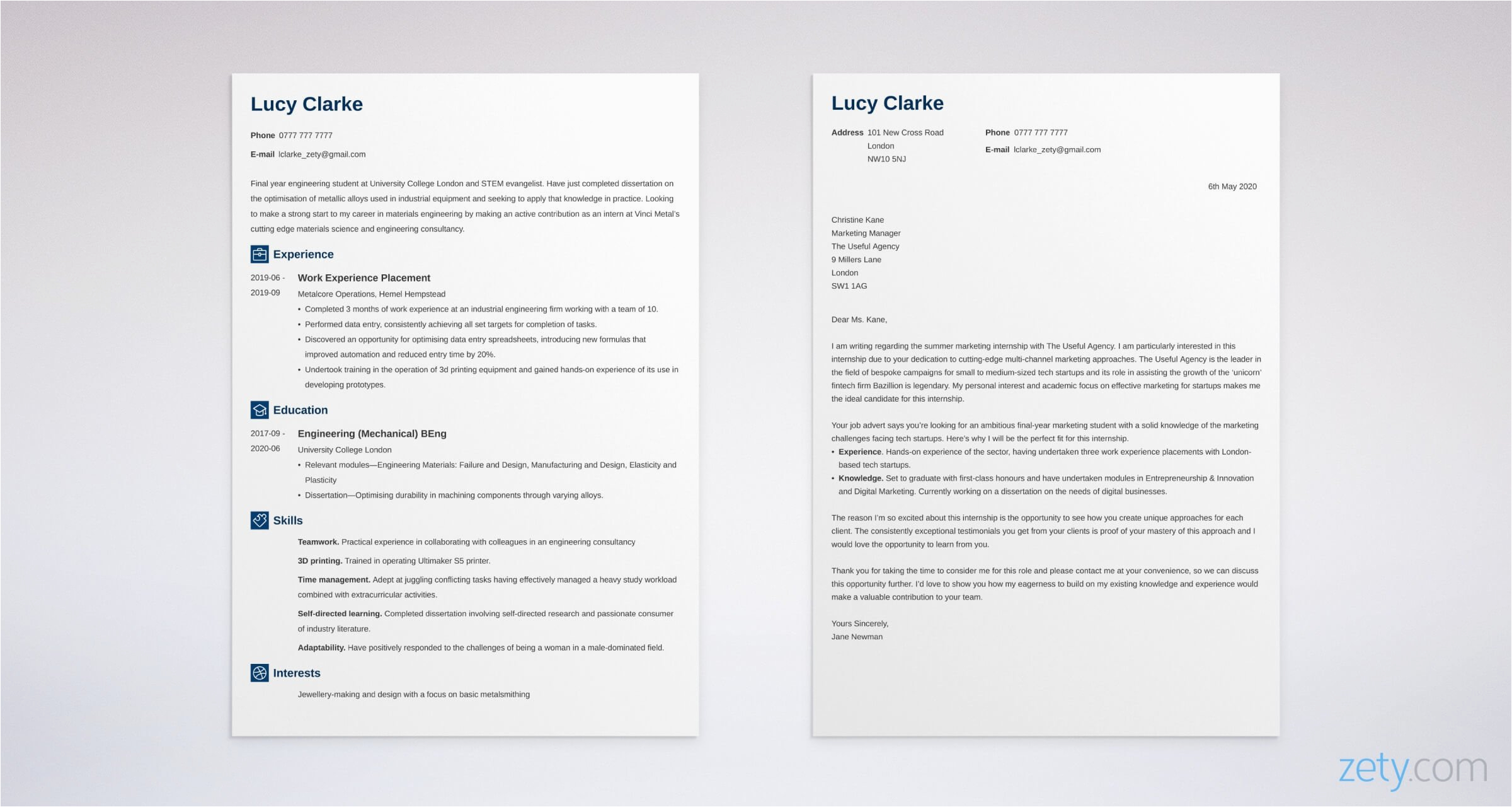 5 Matching CV Cover Letter Template Examples