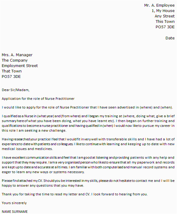 There will be many career books and guides that you can search out at the library or bookstore, which will have at least one resume cover letter sample for nurse practitioner position for you to study, oftentimes more.