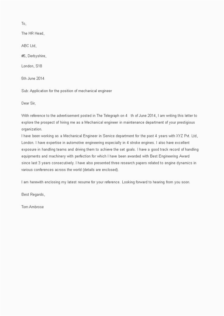 Resume Cover Letter Samples for Mechanical Engineers Mechanical Engineer Cover Letter Sample and all other pictures, designs or photos on our website are copyright of their respective owners. we get our pictures from another websites, search engines and other sources to use as an inspiration for you. please contact us if you think we are infringing copyright of your pictures using contact page. we will be very happy to help you.