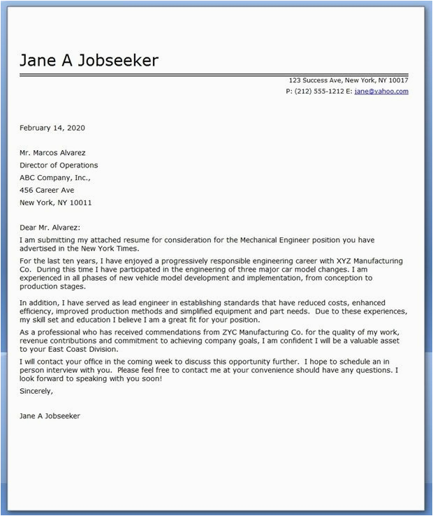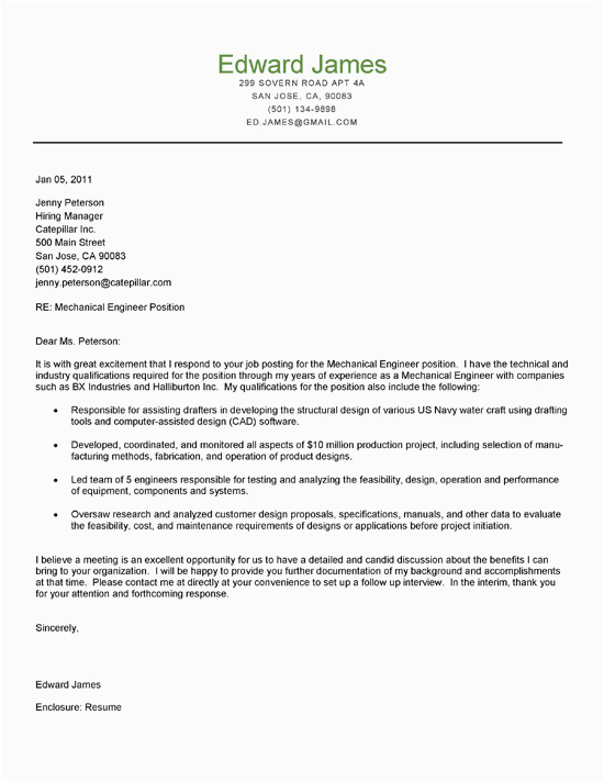 Back To Resume Cover Letter Samples for Mechanical Engineers