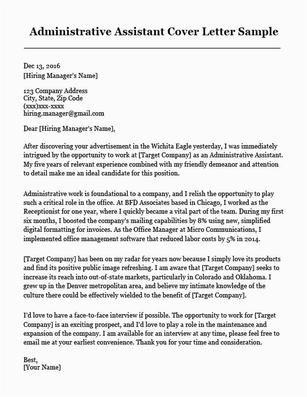 Administrative Assistant Cover Letter Sample