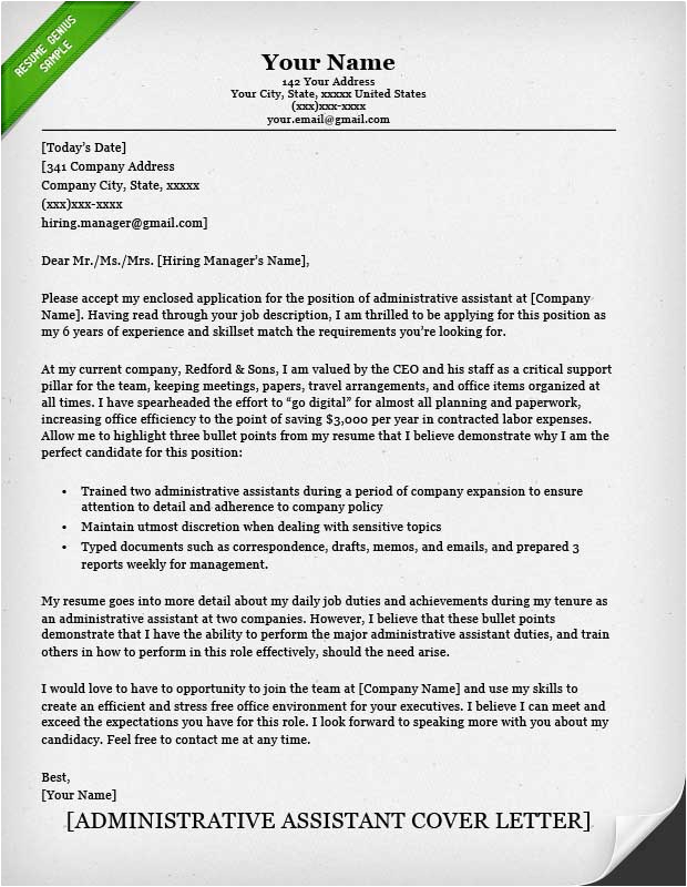 Administrative Assistant Resume Cover Letter