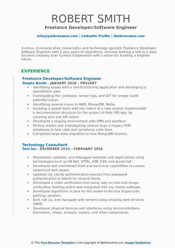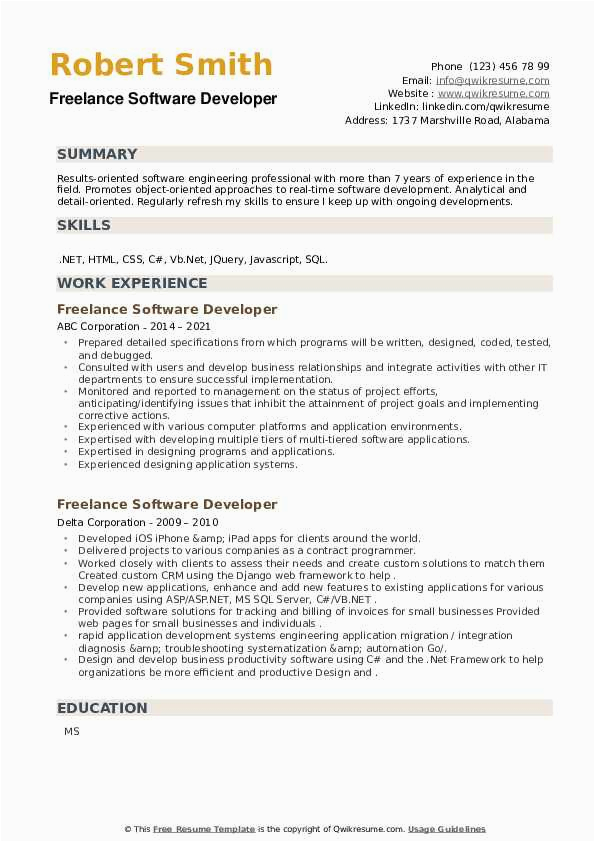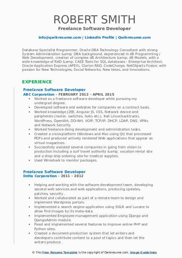 9 photos of the Resume for Freelance software Developer Sample
