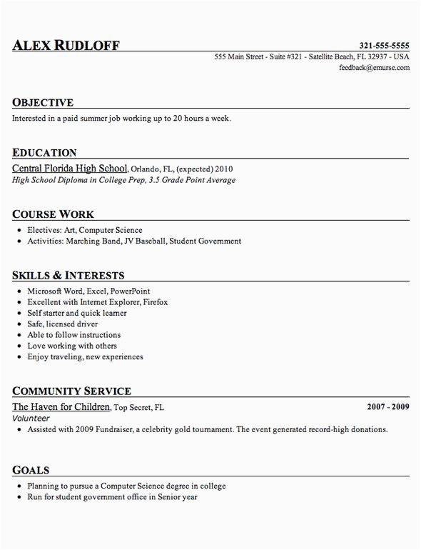 Job Resume Samples For High School Students