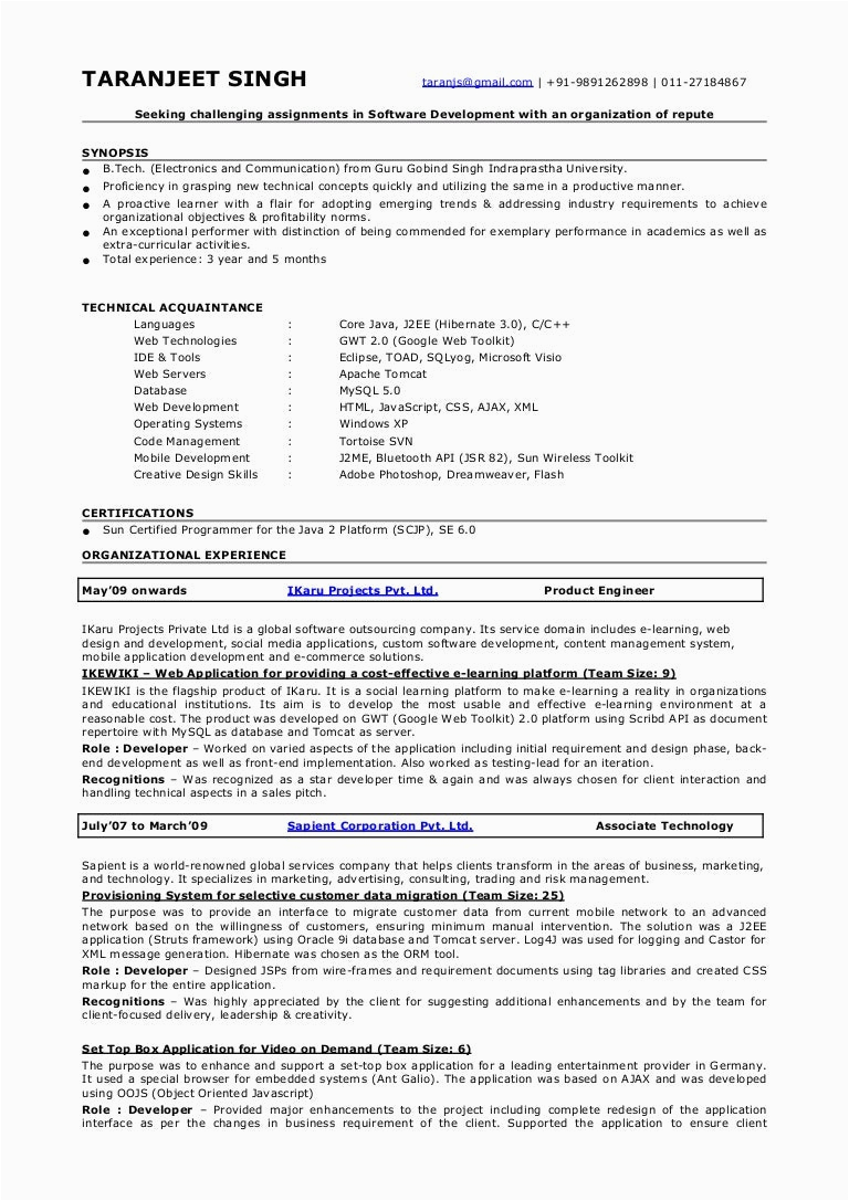 9 photos of the Resume Sample for 5 Year Experience Technology