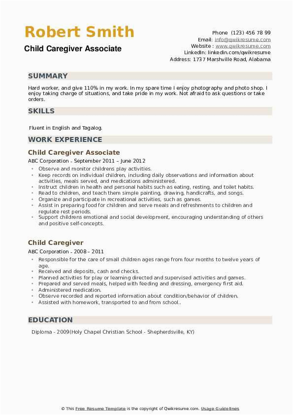 Warning: count(): Parameter must be an array or an object that implements Countable in /var/www/html/naturestudycentre.org/wp-content/themes/silegan-wordpress-theme/inc/themeson.class.php on line 625 Resume Sample for A Child Caregiver Child Caregiver Resume Samples