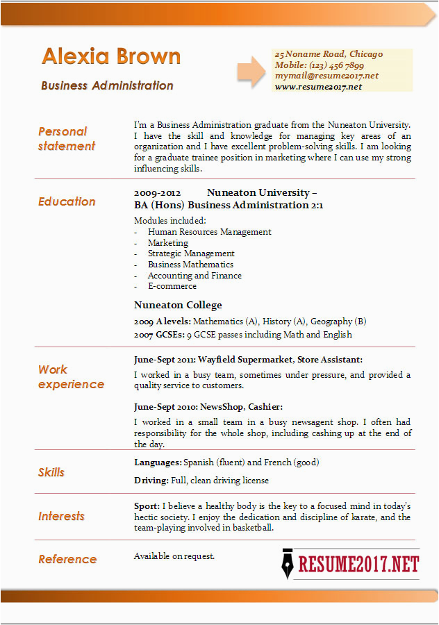 Resume Sample for Business Administration Student Business Administrator Resume Sample and all other pictures, designs or photos on our website are copyright of their respective owners. we get our pictures from another websites, search engines and other sources to use as an inspiration for you. please contact us if you think we are infringing copyright of your pictures using contact page. we will be very happy to help you.
