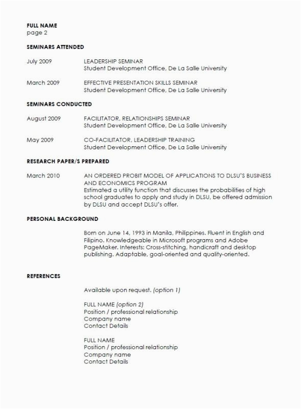 You could afterward download a template from the Internet; there are an abundance of websites where you will be able to find a resume sample for college student philippines, either to conveniently peruse or to download and use.