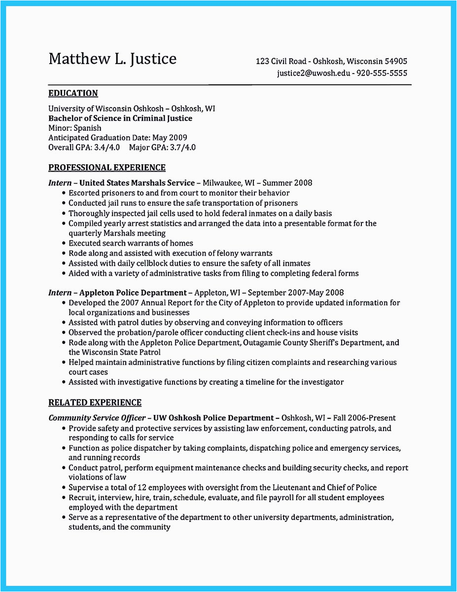 9 photos of the Resume Sample for Criminal Justice Graduates