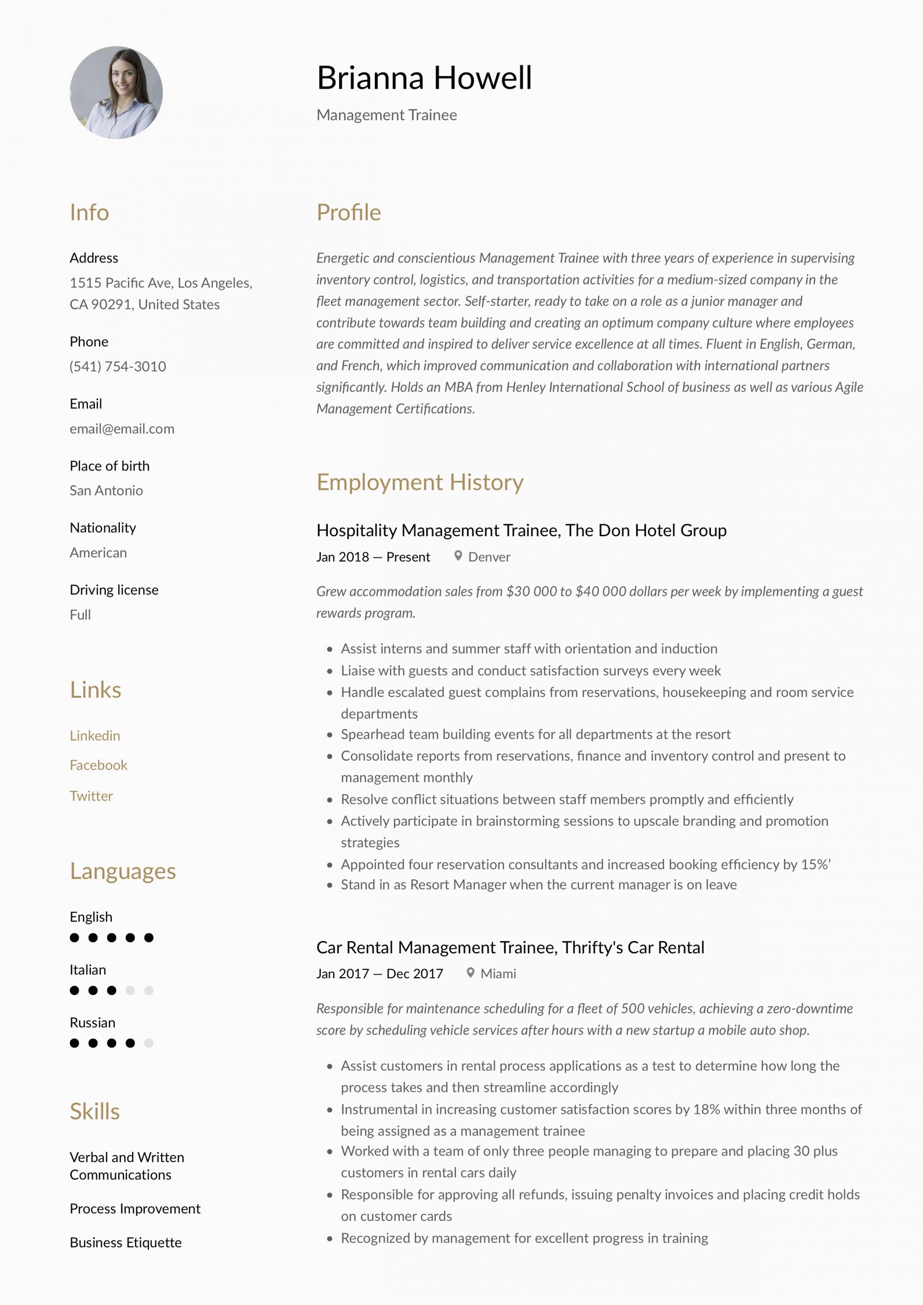 Management Trainee Resume Template in 2020