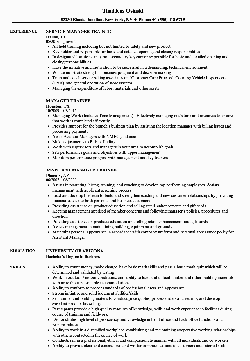 Manager Trainee Resume Samples