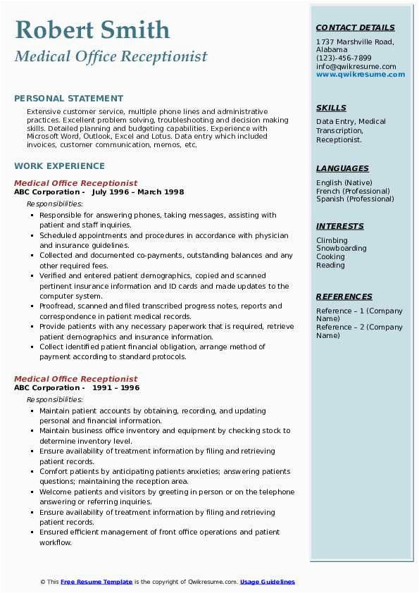 Warning: count(): Parameter must be an array or an object that implements Countable in /var/www/html/naturestudycentre.org/wp-content/themes/silegan-wordpress-theme/inc/themeson.class.php on line 625 Resume Sample for Medical Office Receptionist 5 Medical Receptionist Resume Templates Pdf Doc