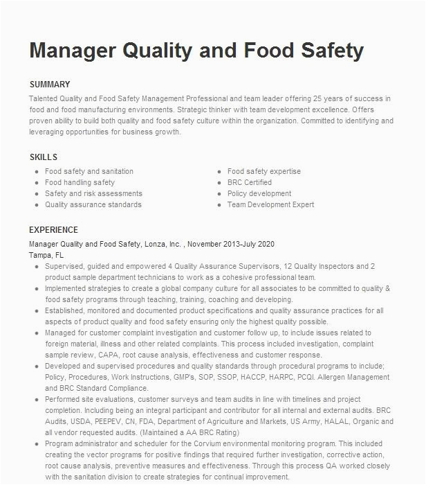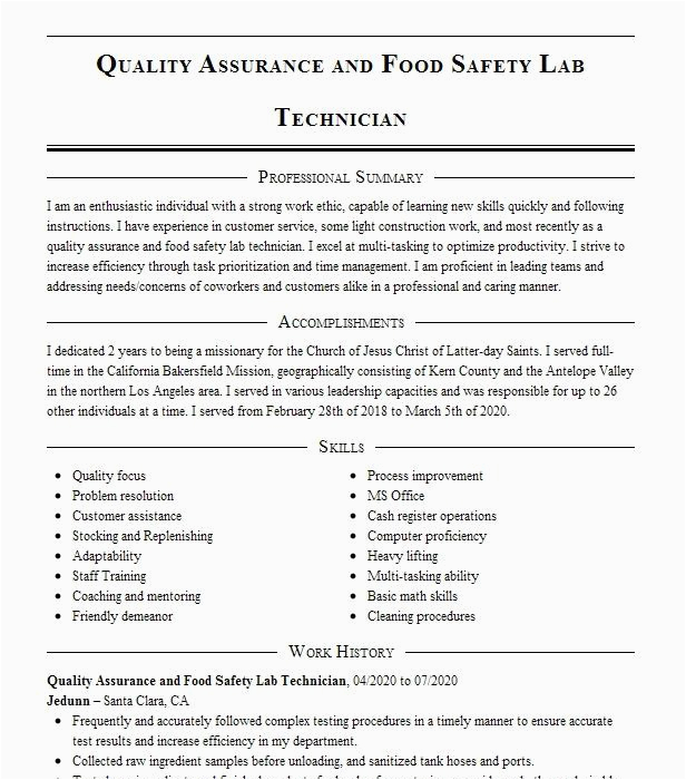 9 photos of the Resume Sample for Quality Control for Food