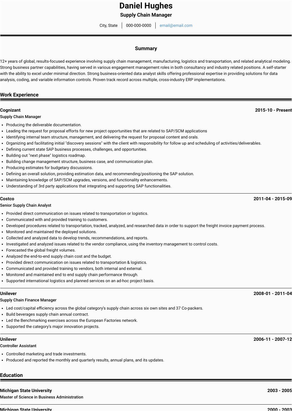 There are correspondingly many options for you as you search for the absolute resume sample for supply chain management, and with some hard conduct yourself and perseverance upon your part, you will find yourself in imitation of a first-class resume in no time, and hopefully, a first-class employer, as well!. For more guidance on resumes or for a resume sample for supply chain management checkout this recommended websites.