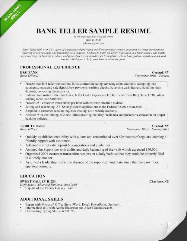 Good Skills To Put A Resume For Bank Teller