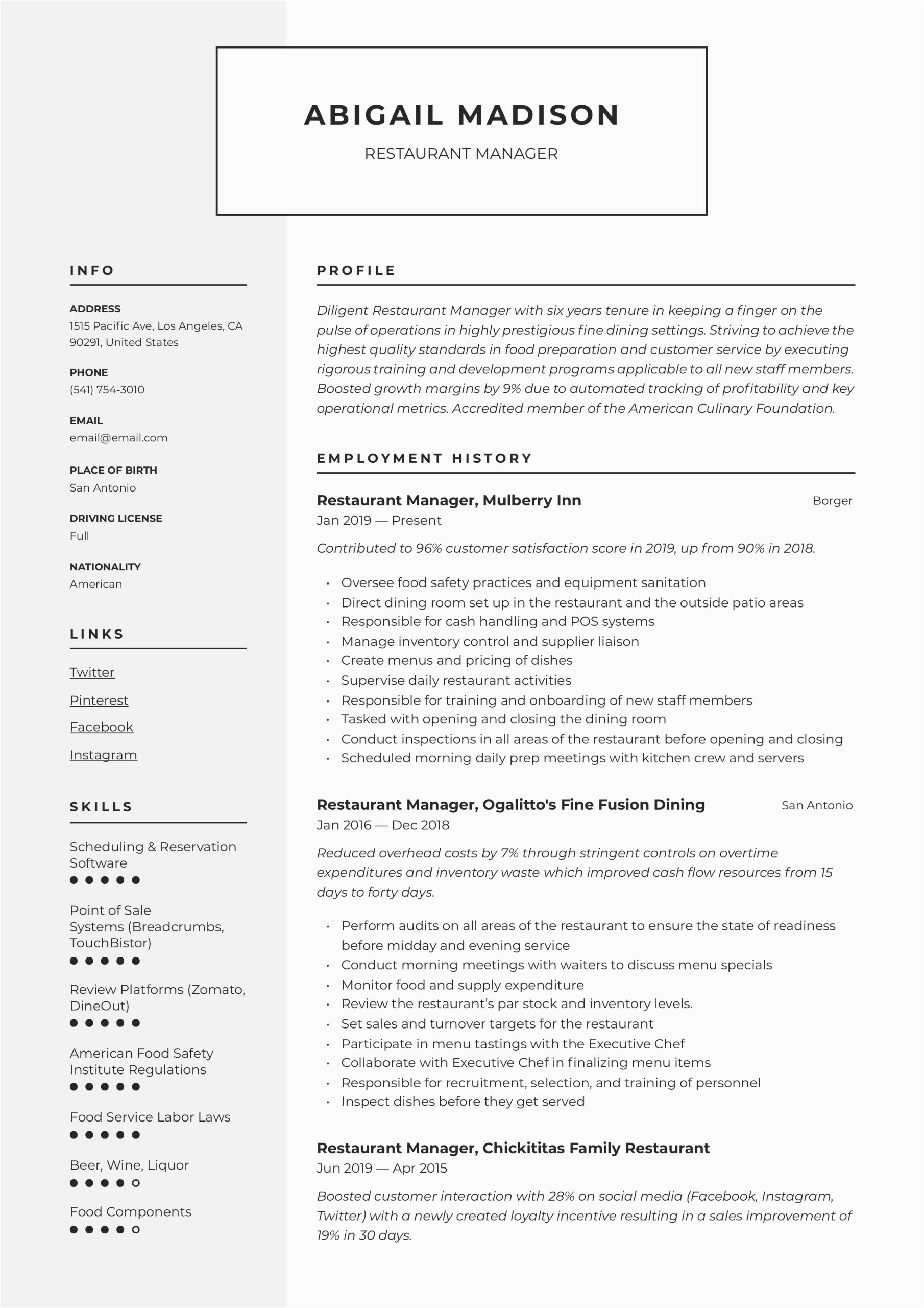9 photos of the Resume Samples for Restaurant Jobs Temporary