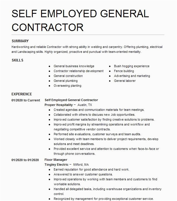 Warning: count(): Parameter must be an array or an object that implements Countable in /var/www/html/naturestudycentre.org/wp-content/themes/silegan-wordpress-theme/inc/themeson.class.php on line 625 Resume Samples for Self Employed Contractors 32 Lovely Self Employed Contractor Resume In 2020