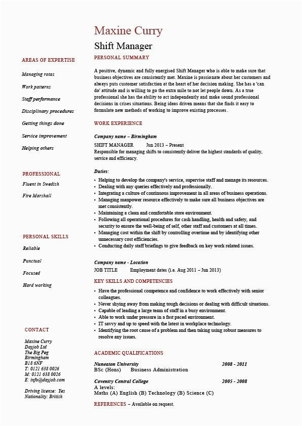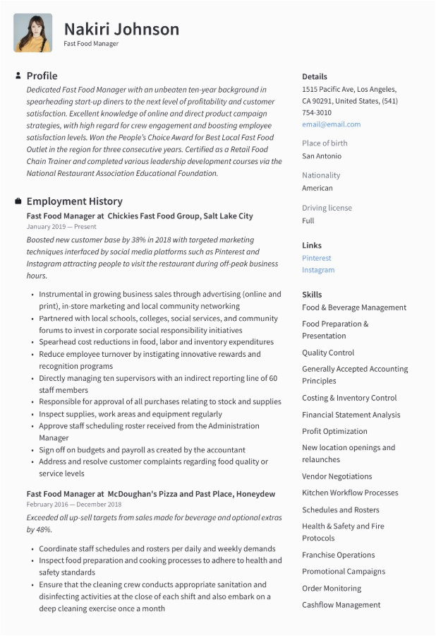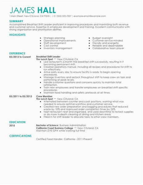 9 photos of the Resume Samples for Shift Leader Fast Food