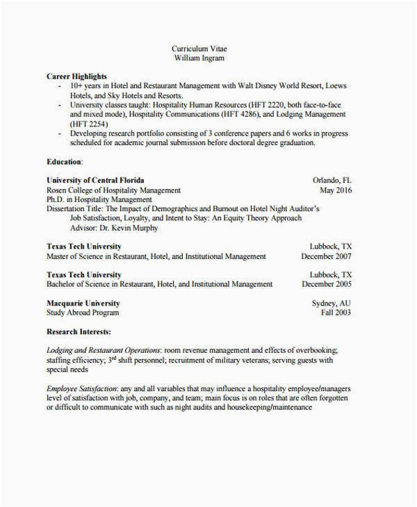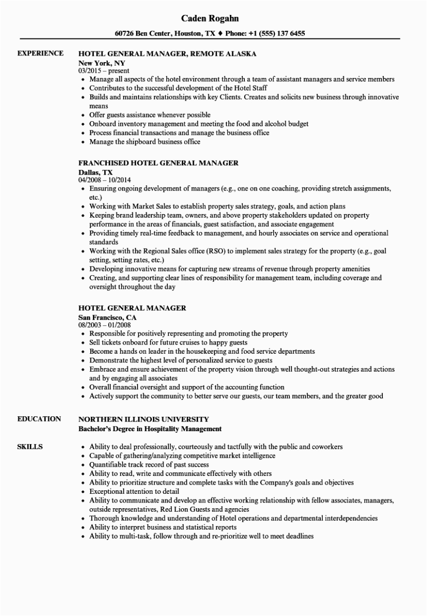 9 photos of the Resume Samples for Those In Hospitality Industry