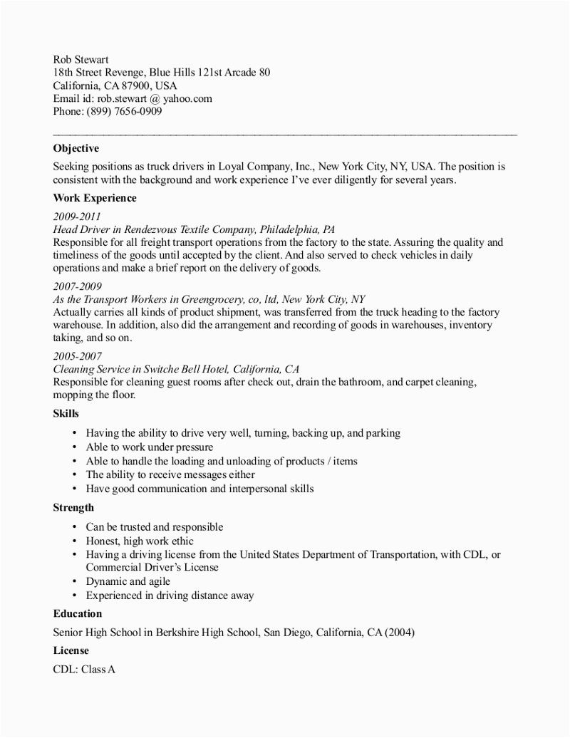 Subsequently you are searching for the perfect job, you will of course desire to put your best foot deliver in the same way as an fabulous and well-formatted resume. One showing off of assuring that you have such a resume is to download a resume samples for truck drivers with an objective. These templates can offer you behind the truthful resume you are looking for or usefully use them as a lead to create your own.