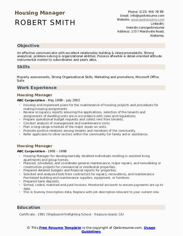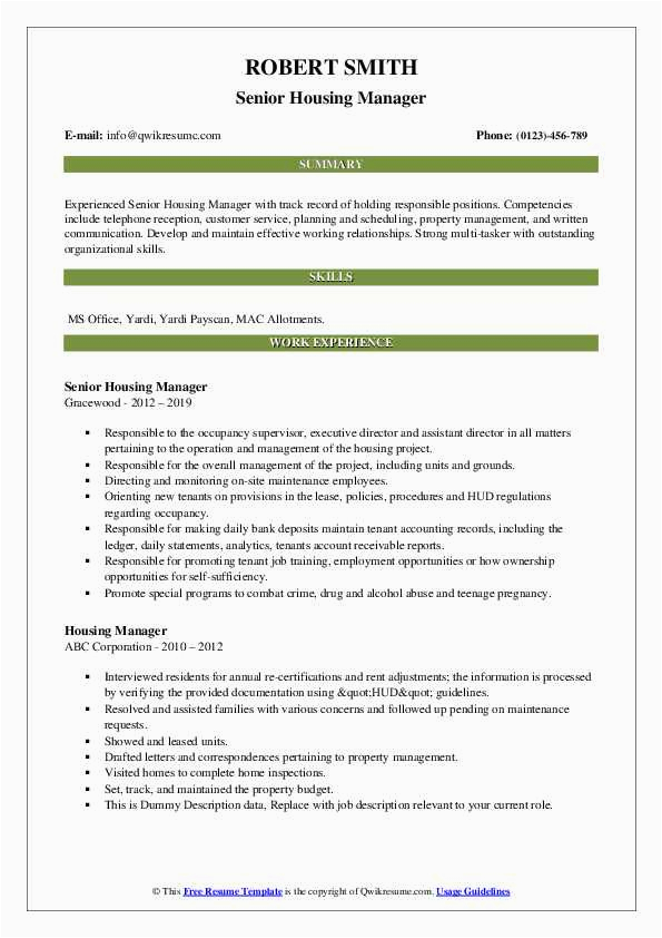Resume Samples Property Supervisor Corporate Housing Housing Manager Resume Samples and all other pictures, designs or photos on our website are copyright of their respective owners. we get our pictures from another websites, search engines and other sources to use as an inspiration for you. please contact us if you think we are infringing copyright of your pictures using contact page. we will be very happy to help you.