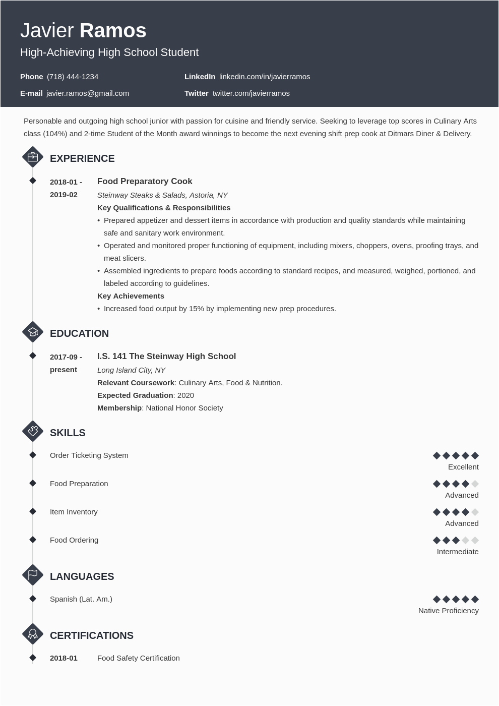 sample high school student resume