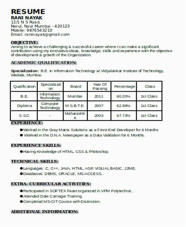 Resume Format 20 Years Experience experience format