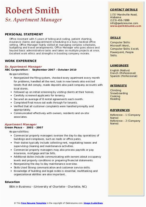 The uses of resume template for apartment property manager downloads are in the region of limitless! You are bound to find the absolute template that will save you time, allow you a professional appearance, and leave a lasting announce to home the interview.