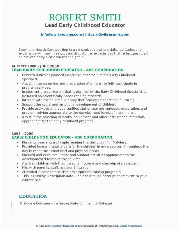 The uses of resume template for early childhood educator downloads are as regards limitless! You are bound to find the absolute template that will keep you time, offer you a professional appearance, and depart a lasting heavens to home the interview.
