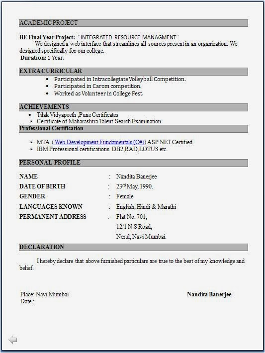 Fresher Resume Format