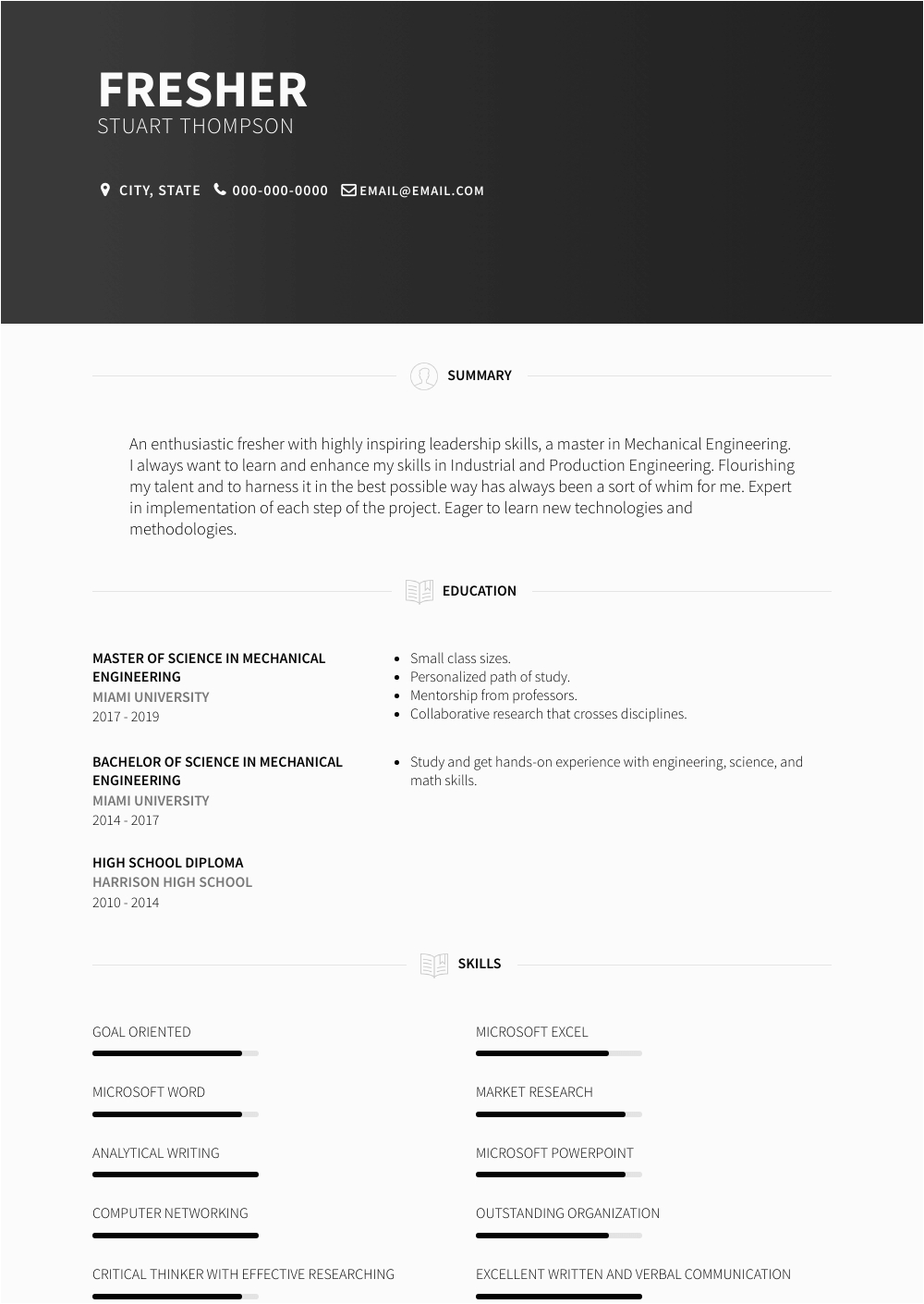 Fresher Resume Samples and Templates