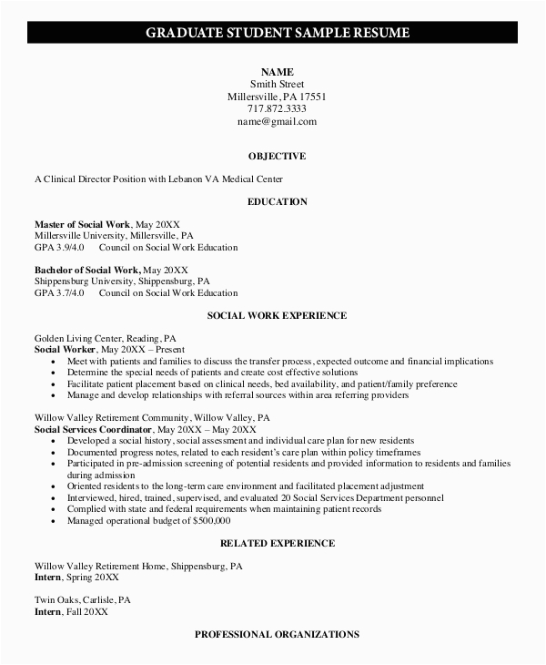 Resume for Graduate School Application Examples Template